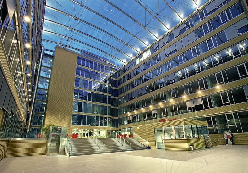 在维也纳市,有一座办公楼坐落在熙熙攘攘的普拉特斯特恩广场边缘。这是该市最具吸引力的开放空间之一。这座新的 8 层办公楼占地约 5,000 平方米,由两个几乎平行的结构和一个中庭组成。虽然使用了八种不同的外墙类型,但办公楼最有趣的设计方面是 Texlon® ETFE 技术。这种创新的轻质材料完美地结合了暴露、热保护、耐用性和易于安装。