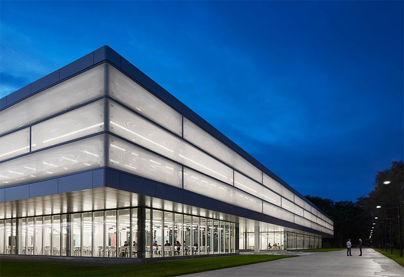 伊利诺伊理工学院 (Illinois Tech) 的 Ed Kaplan 家庭创新与科技创业学院是校园内最新、最具创新性的建筑,采用 Vector Foiltec 设计的独一无二的 Texlon® ETFE 外墙。
