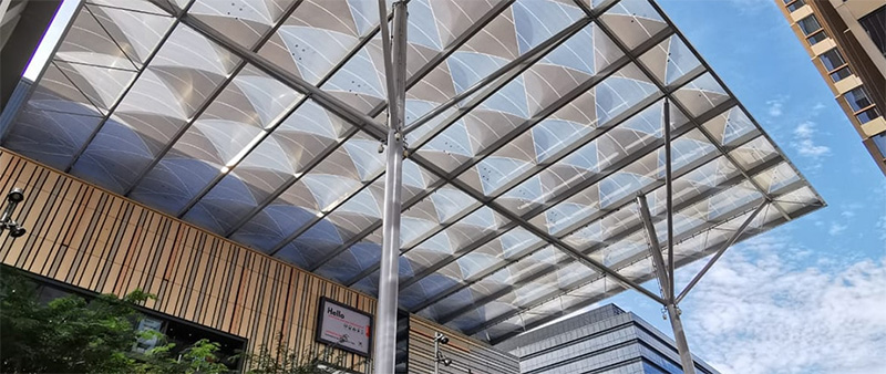 选择体验。选择 Vector Foiltec。对于 Paya Lebar Quarter 天篷,Vector Foiltec 提供了一个整体解决方案项目。它包括设计、工程、钢结构、我们的 Texlon® ETFE、防坠落系统以及向 BCA 和 MRT 提交的授权。
